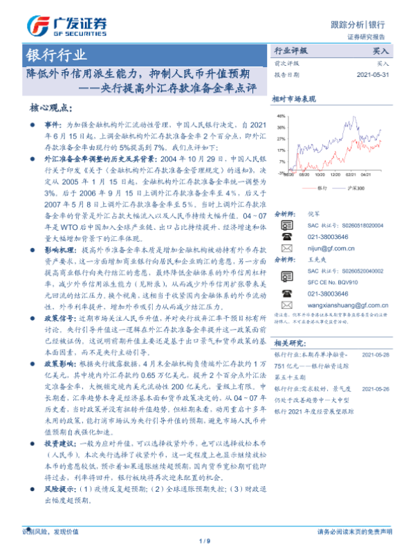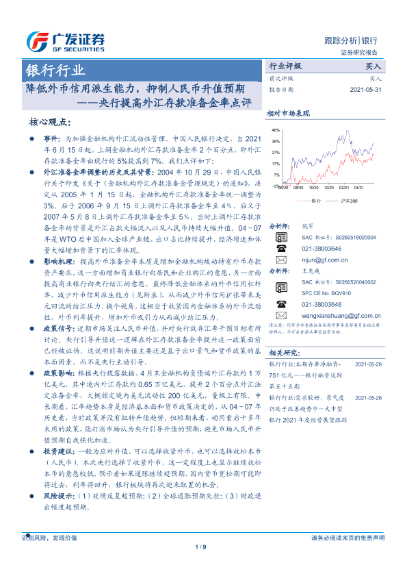 【广发证券】【20210531】降低外币信用派生能力,抑制人民币升值预期——央行提高外汇存款准备金率点评-9页
