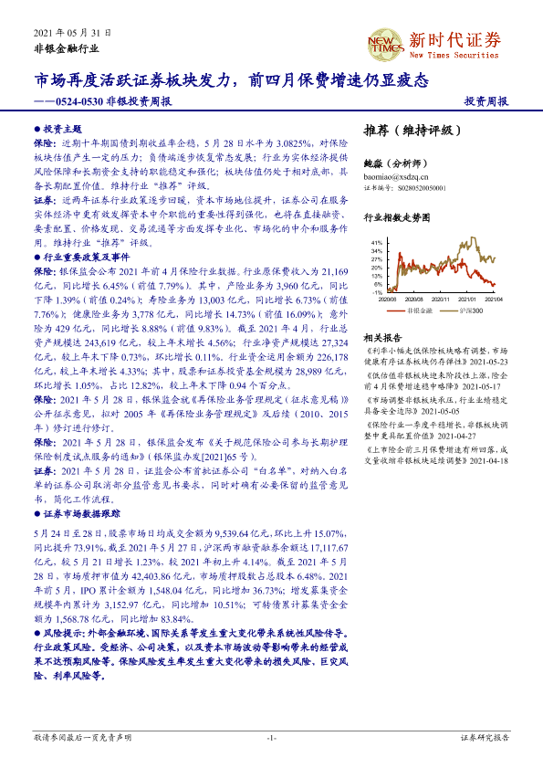 【新时代证券】【20210531】市场再度活跃证券板块发力,前四月保费增速仍显疲态-14页