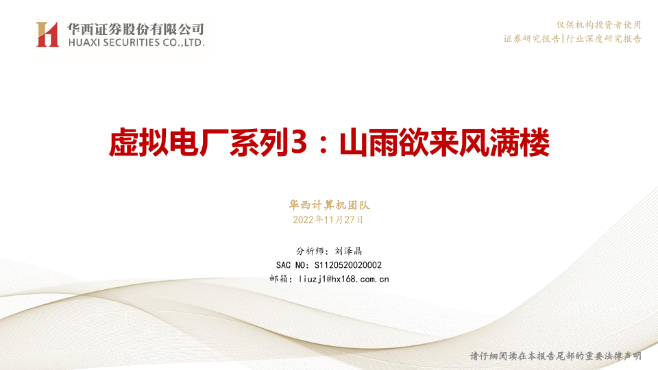 【华西证券】【20221127】虚拟电厂系列3:山雨欲来风满楼-36页