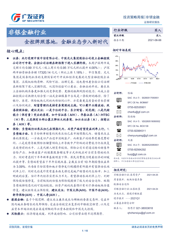 【广发证券】【20210606】非银金融行业投资策略周报:金控牌照落地,金融业态步入新时代-10页