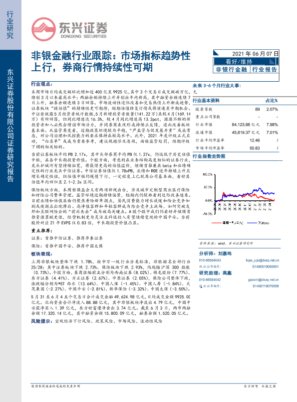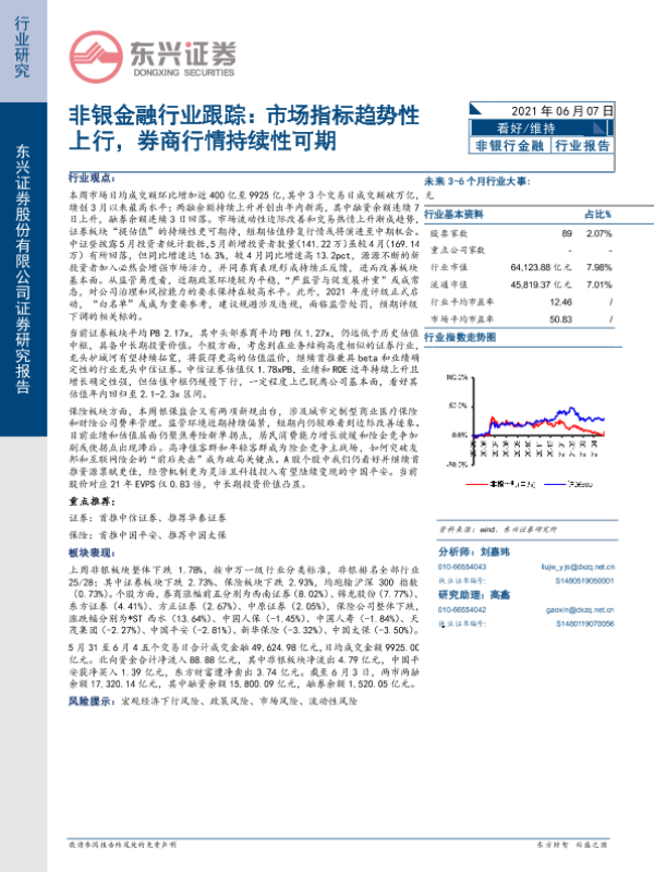 【东兴证券】【20210607】非银金融行业跟踪:市场指标趋势性上行,券商行情持续性可期-10页