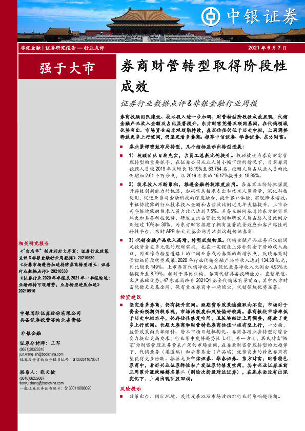 【中银证券】【20210607】证券行业数据点评&非银金融行业周报:券商财管转型取得阶段性成效-8页