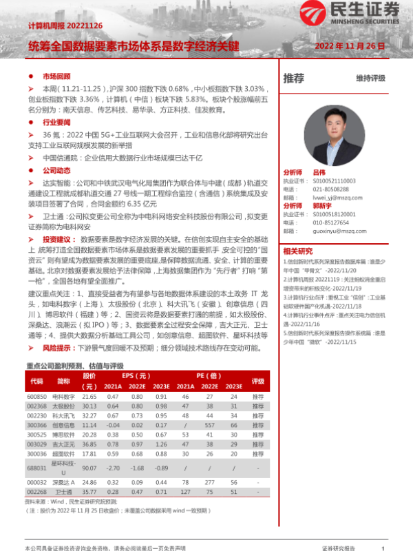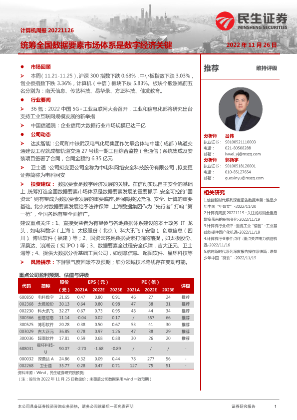 【民生证券】【20221126】计算机周报:统筹全国数据要素市场体系是数字经济关键-21页