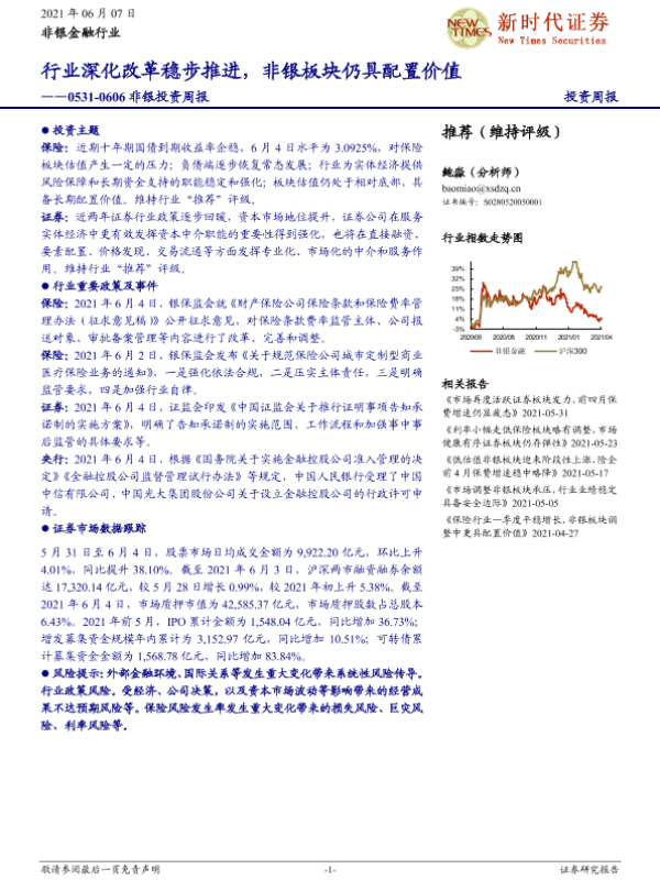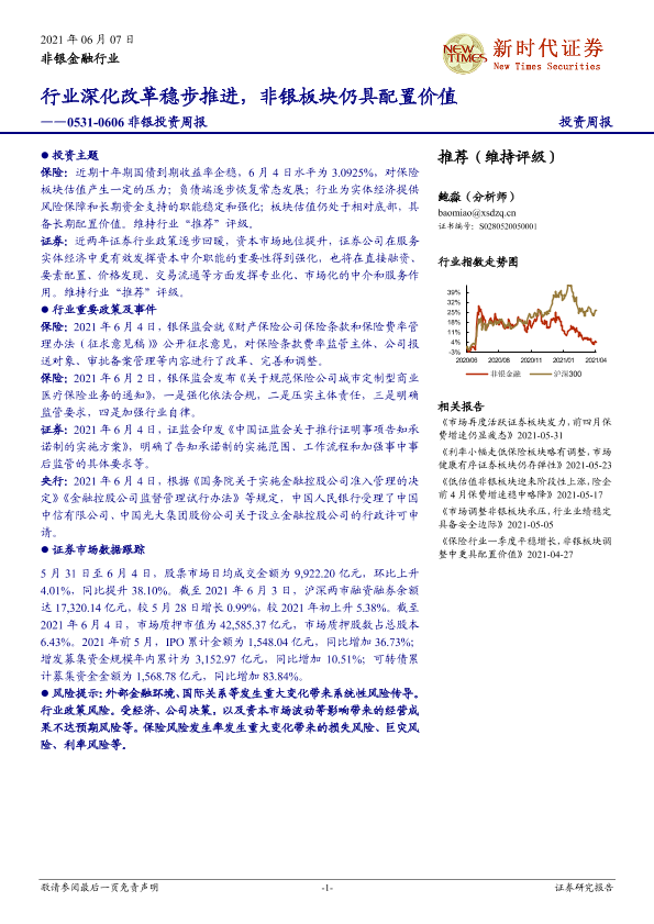 【新时代证券】【20210607】新时代证券非银投资周报:行业深化改革稳步推进,非银板块仍具配置价值-12页
