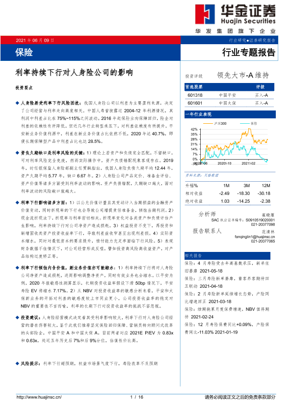 【华金证券】【20210609】利率持续下行对人身险公司的影响-16页