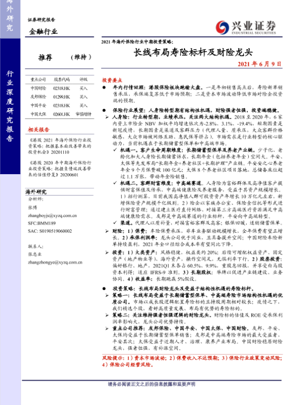 【兴业证券】【20210609】2021年海外保险行业中期投资策略:长线布局寿险标杆及财险龙头-56页