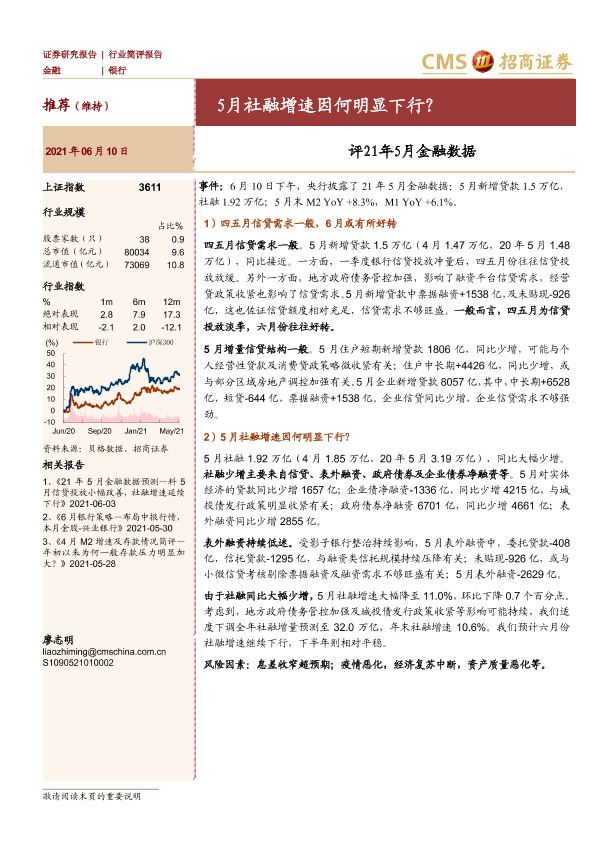 【海通证券】【20210610】评21年5月金融数据:5月社融增速因何明显下行?-5页