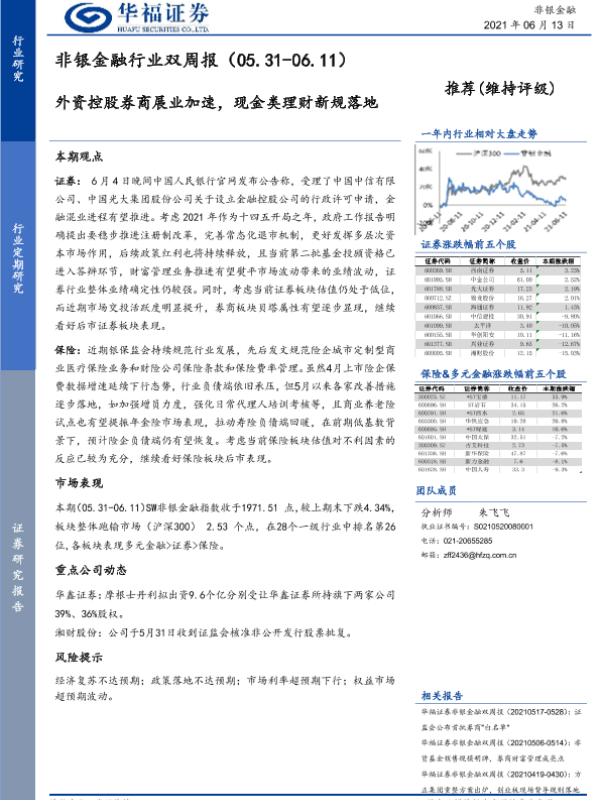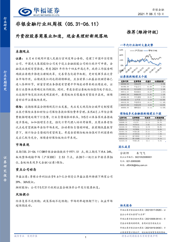 【华福证券】【20210613】非银金融行业双周报:外资控股券商展业加速,现金类理财新规落地-10页