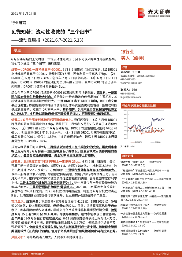 【光大证券】【20210614】银行业流动性周报:见微知著:流动性收敛的“三个细节”-10页