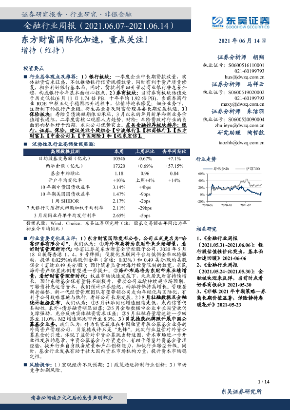 【东吴证券】【20210614】金融行业周报:东方财富国际化加速,重点关注!-14页