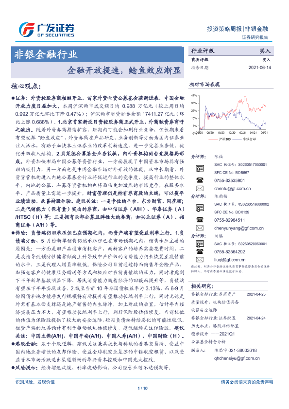【广发证券】【20210614】非银金融行业:市场改革深化,龙头优势明显-10页