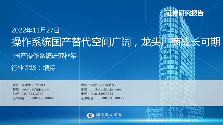 【国泰君安证券】【20221127】计算机行业国产操作系统研究框架:操作系统国产替代空间广阔,龙头厂商成长可期-85页