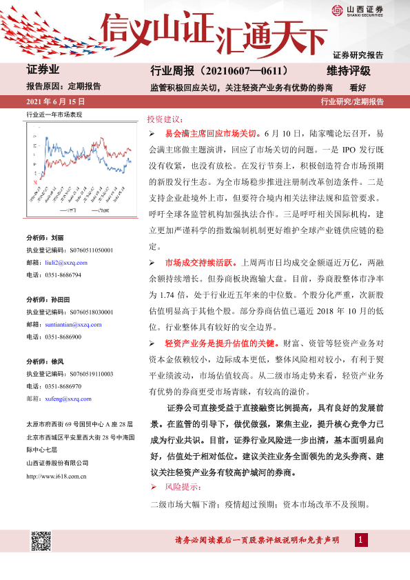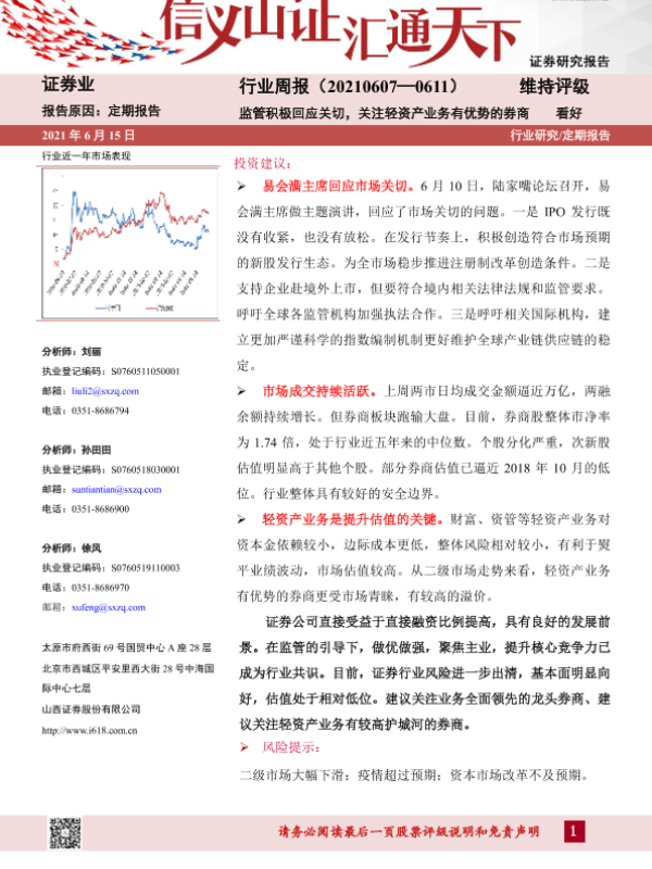 【山西证券】【20210615】证券行业周报:监管积极回应关切,关注轻资产业务有优势的券商-8页