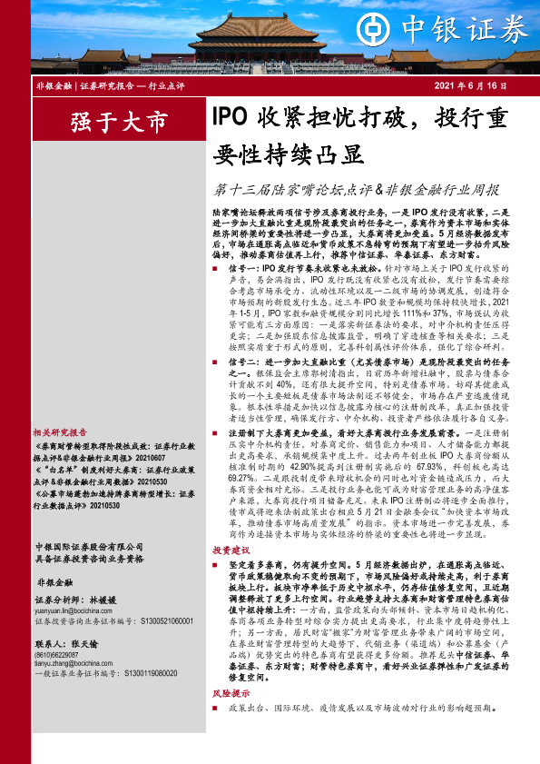 【中银证券】【20210616】IPO收紧担忧打破,投行重要性持续凸显-9页
