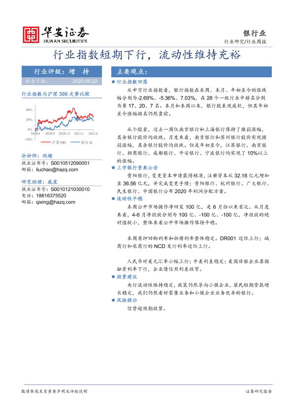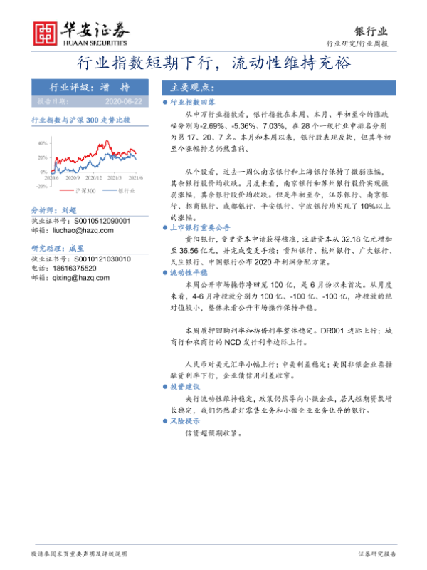 【华安证券】【20210621】银行行业周报:行业指数短期下行,流动性维持充裕-14页