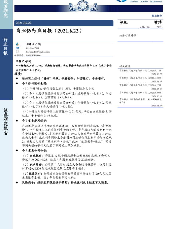 【国泰君安证券】【20210622】商业银行业日报-3页