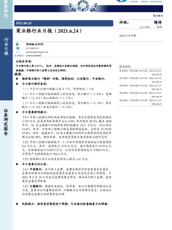 【国泰君安证券】【20210624】商业银行业日报-3页