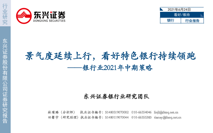 【东兴证券】【20210624】银行业2021年中期策略:景气度延续上行,看好特色银行持续领跑-31页