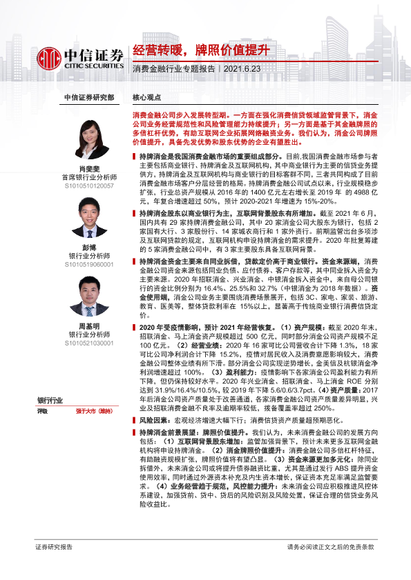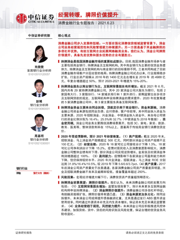 【中信证券】【20210623】消费金融行业专题报告:经营转暖,牌照价值提升-16页