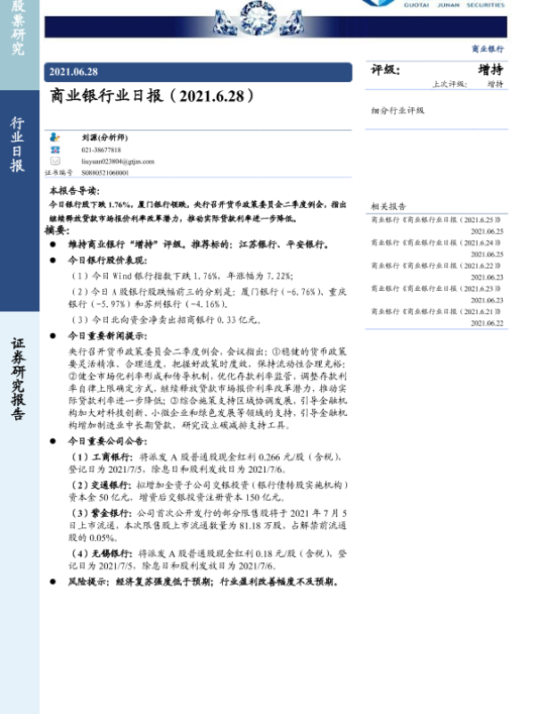 【国泰君安证券】【20210628】商业银行业日报-3页