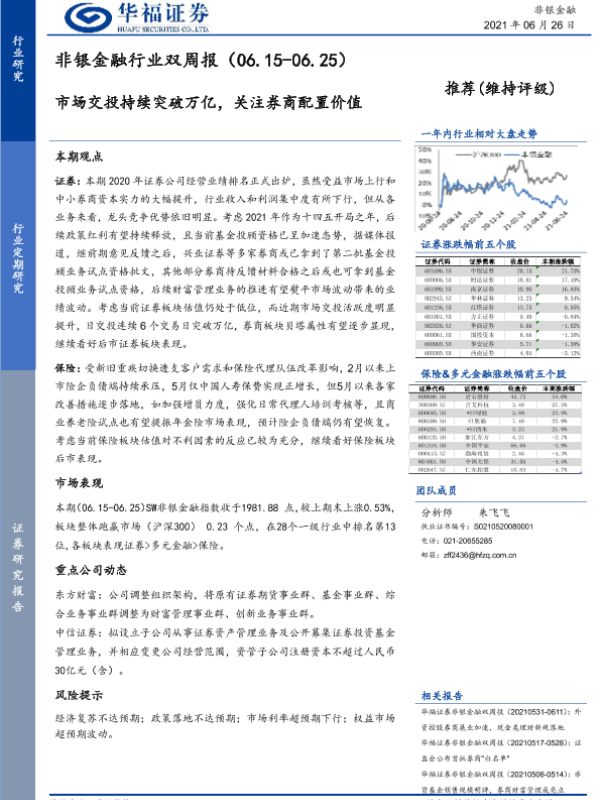 【华福证券】【20210626】非银金融行业双周报:市场交投持续突破万亿,关注券商配置价值-10页