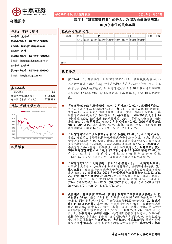 市值估算 行业预测 财富管理 资产管理 金融市场