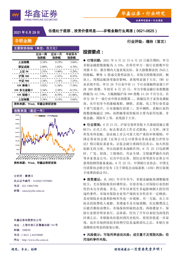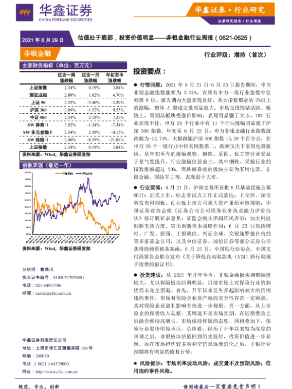 【华鑫证券】【20210629】非银金融行业周报:估值处于底部,投资价值明显-12页