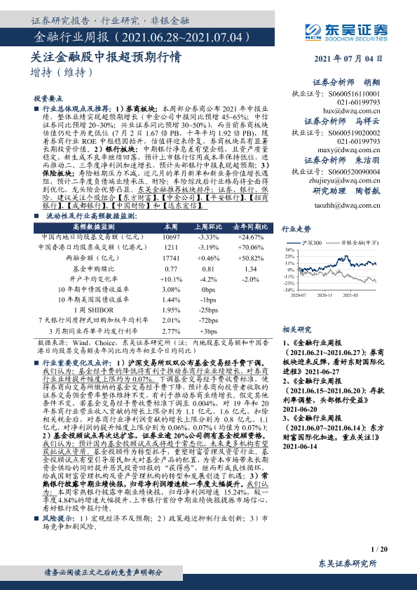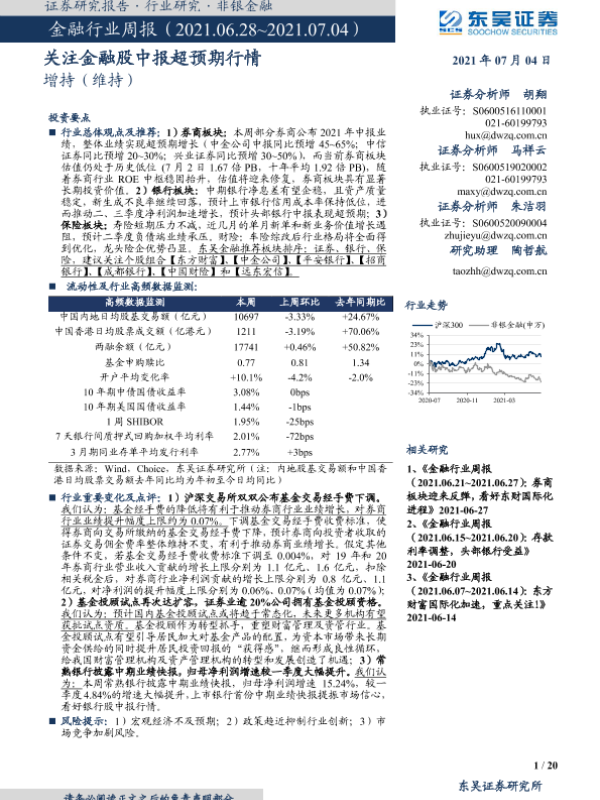 【东吴证券】【20210704】金融行业周报:关注金融股中报超预期行情-20页