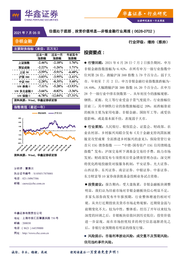 【华鑫证券】【20210705】非银金融行业周报:估值处于底部,投资价值明显-13页