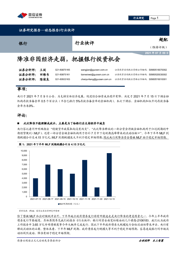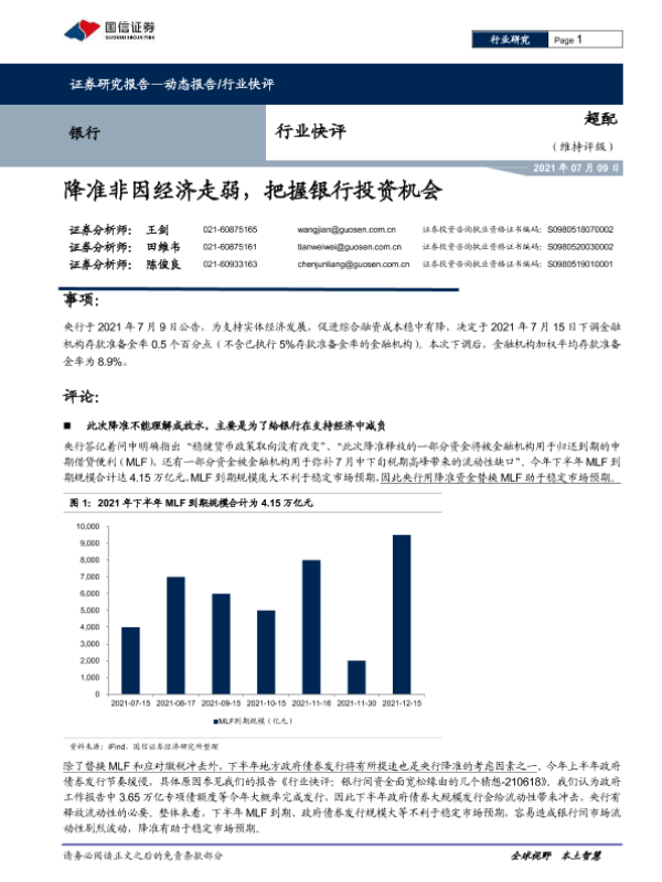 【国信证券】【20210709】降准非因经济走弱,把握银行投资机会-6页