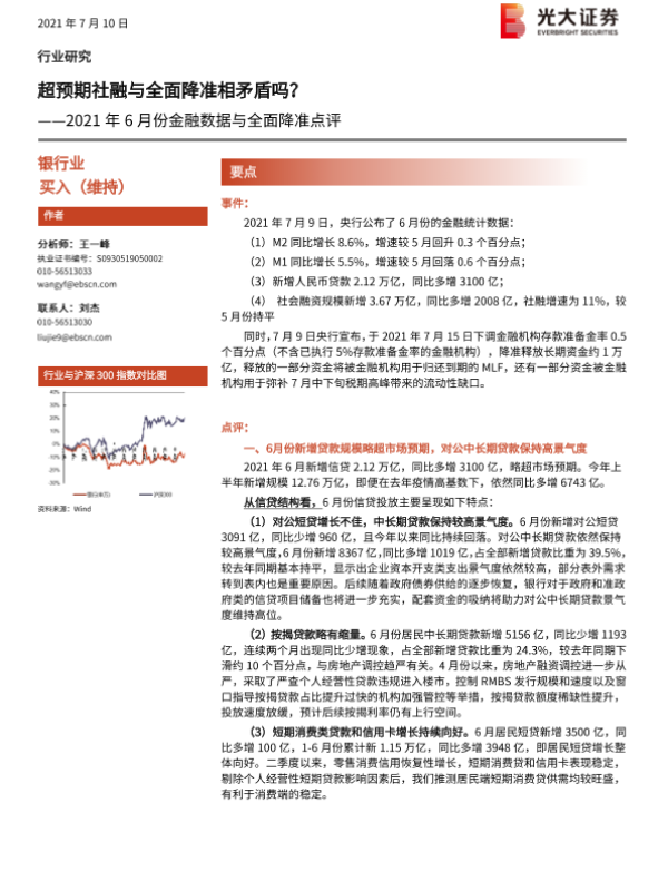 【光大证券】【20210710】2021年6月份金融数据与全面降准点评:超预期社融与全面降准相矛盾吗?-7页