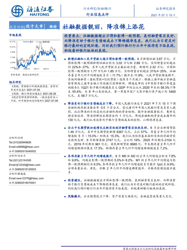 【海通证券】【20210710】银行行业信息点评:社融数据靓丽,降准锦上添花-2页