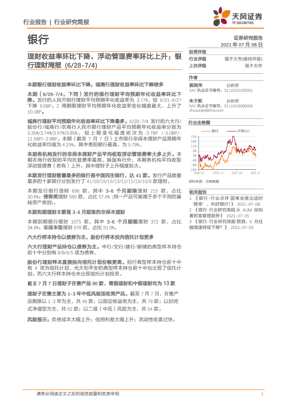 【天风证券】【20210708】理财收益率环比下降,浮动管理费率环比上升-18页