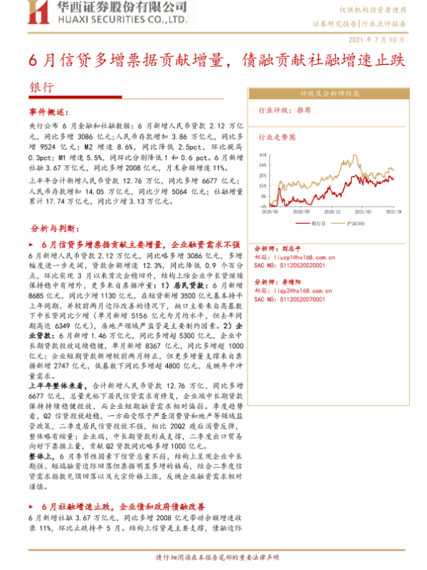 【华西证券】【20210710】6月信贷多增票据贡献增量,债融贡献社融增速止跌-4页