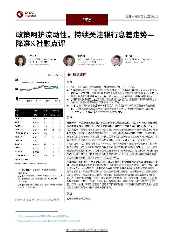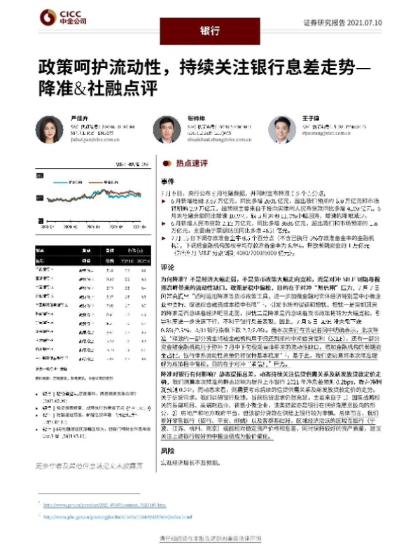 【中金公司】【20210710】政策呵护流动性,持续关注银行息差走势-8页