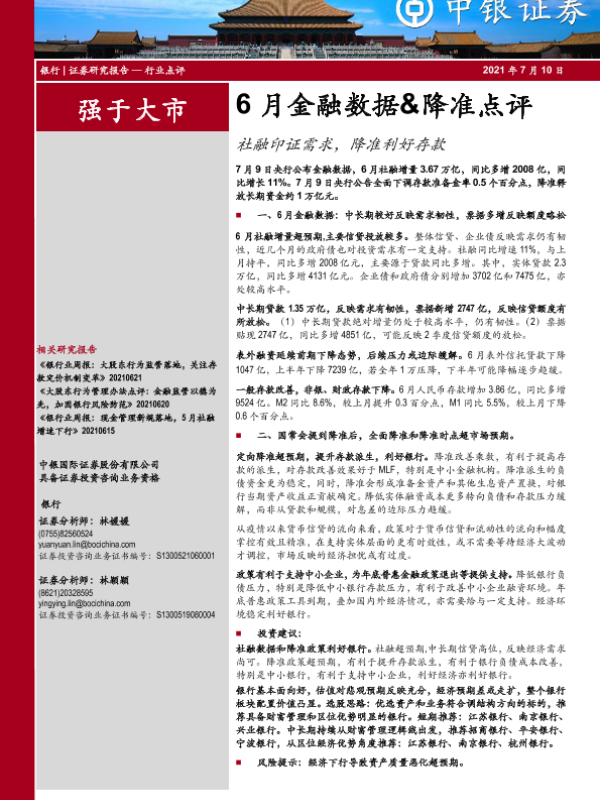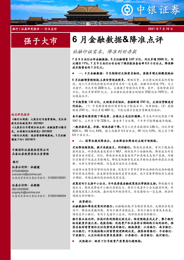 【中银证券】【20210710】6月金融数据&降准点评:社融印证需求,降准利好存款-7页