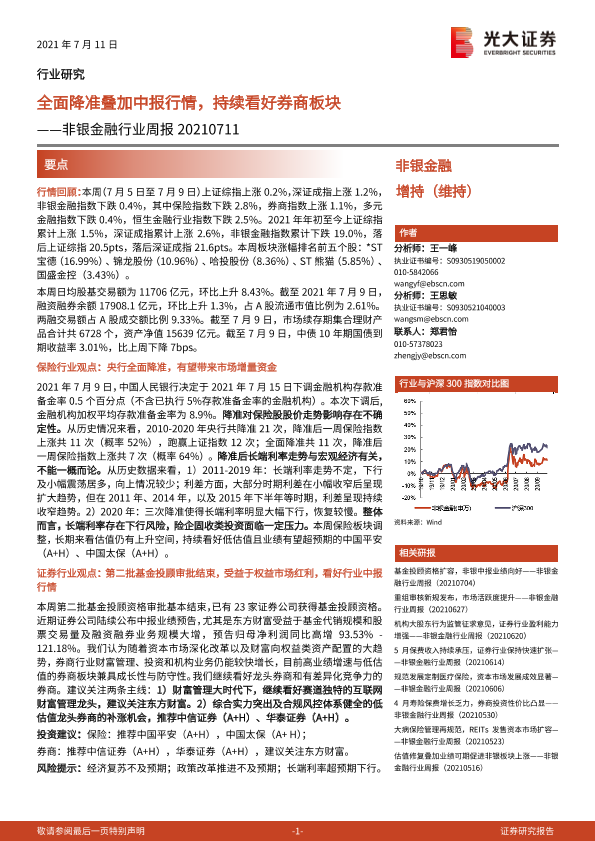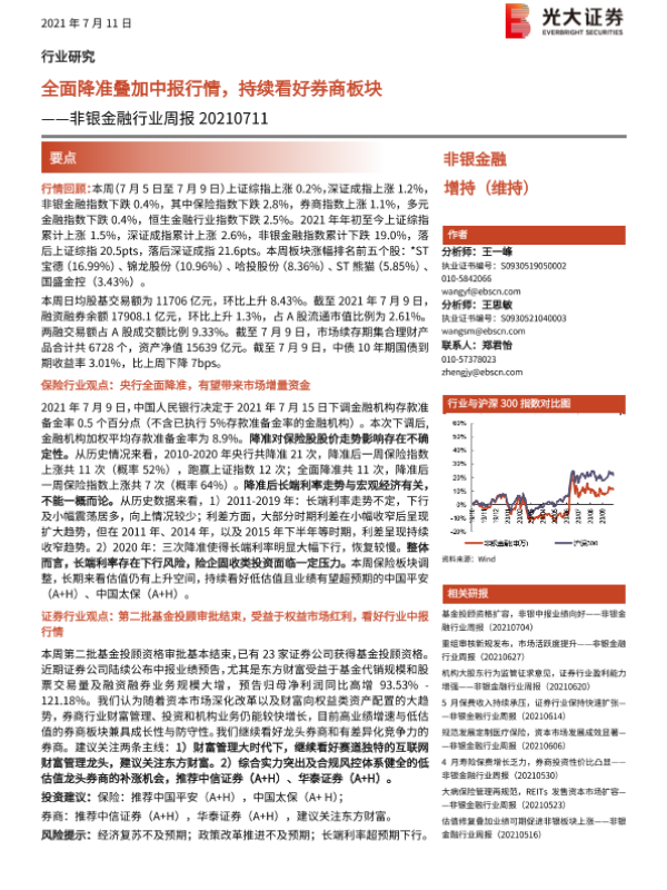 【光大证券】【20210711】非银金融行业周报:全面降准叠加中报行情,持续看好券商板块-10页