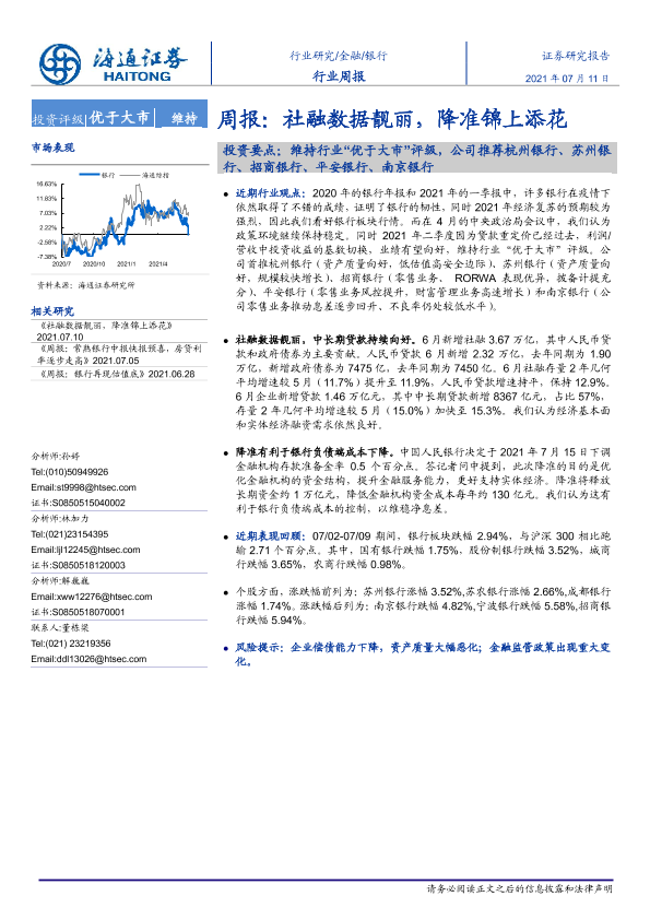 【海通证券】【20210711】社融数据靓丽,降准锦上添花-8页