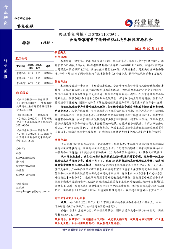 【兴业证券】【20210711】全面降准背景下看好非银板块阶段性布局机会-15页