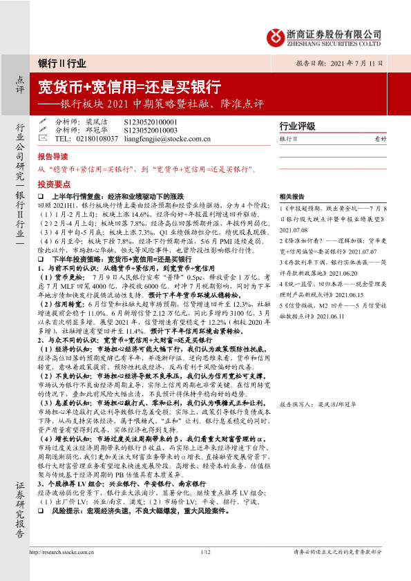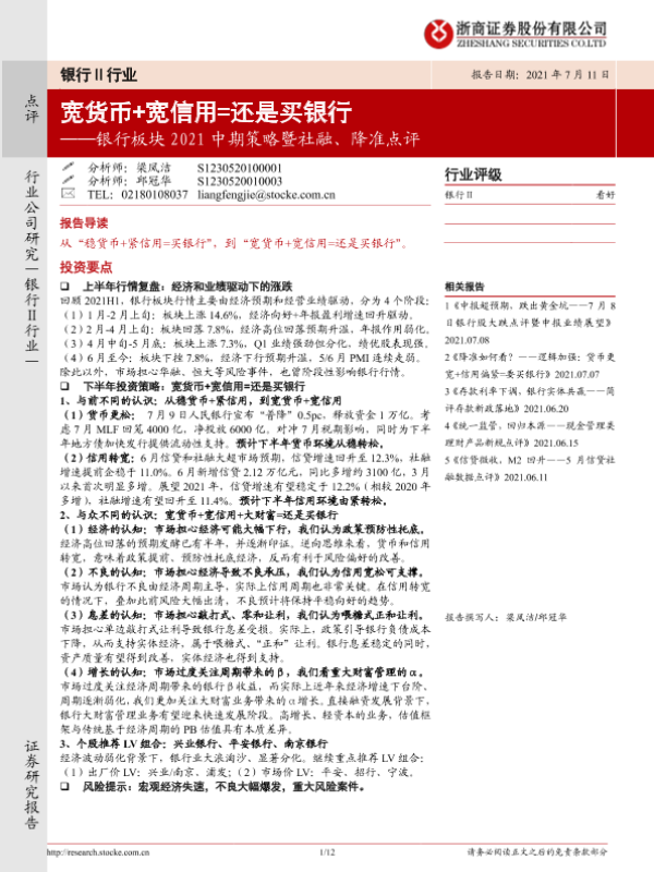 【浙商证券】【20210711】宽货币+宽信用=还是买银行-12页