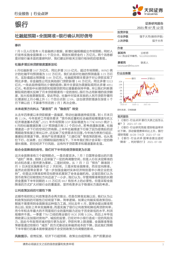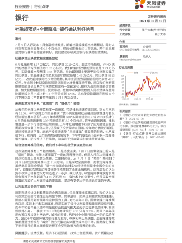 【天风证券】【20210712】社融超预期+全面降准=银行确认利好信号-7页