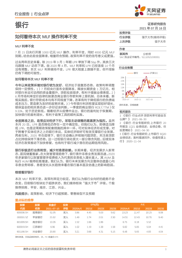 【天风证券】【20210716】如何看待本次MLF操作利率不变-7页