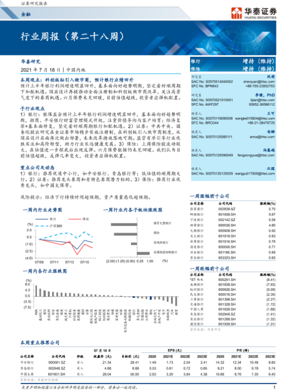 【华泰证券】【20210718】金融行业周报(第二十八周)-26页