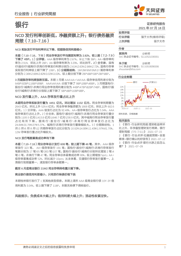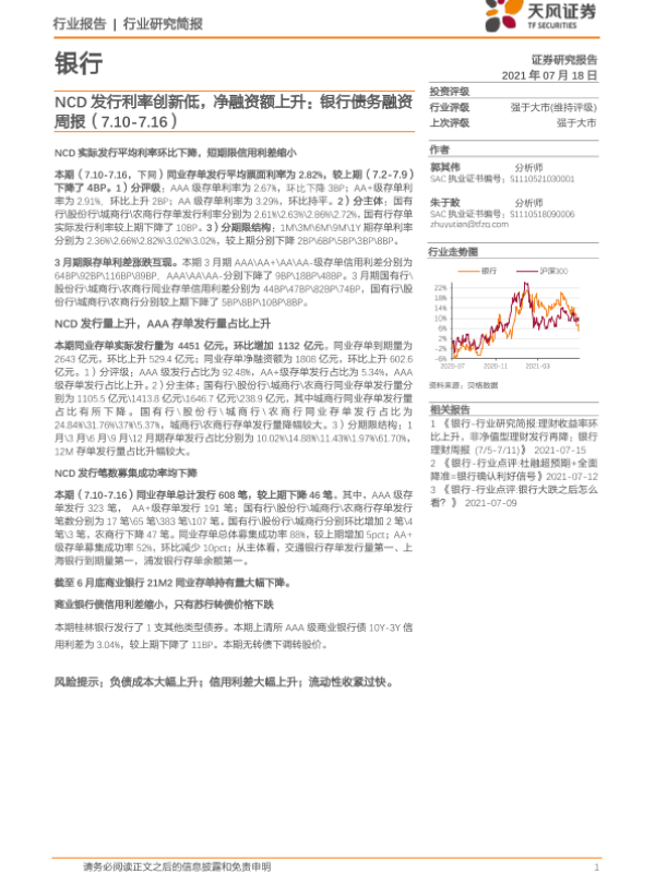 【天风证券】【20210718】NCD发行利率创新低,净融资额上升-14页