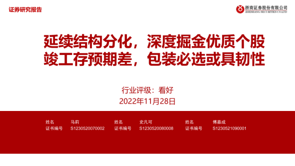 【浙商证券】【20221128】轻工:延续结构分化,深度掘金优质个股 竣工存预期差,包装必选或具韧性-66页