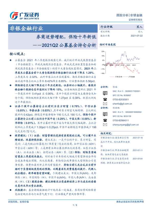 【广发证券】【20210722】2021Q2公募基金持仓分析:券商逆势增配,保险十年新低-9页