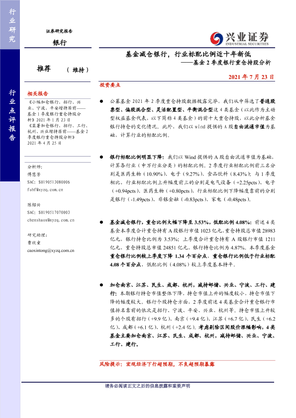 【兴业证券】【20210723】基金减仓银行,行业标配比例近十年新低-6页