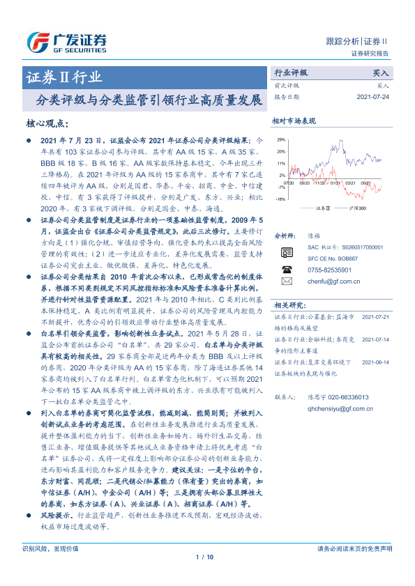 【广发证券】【20210724】证券Ⅱ行业跟踪分析:分类评级与分类监管引领行业高质量发展-10页