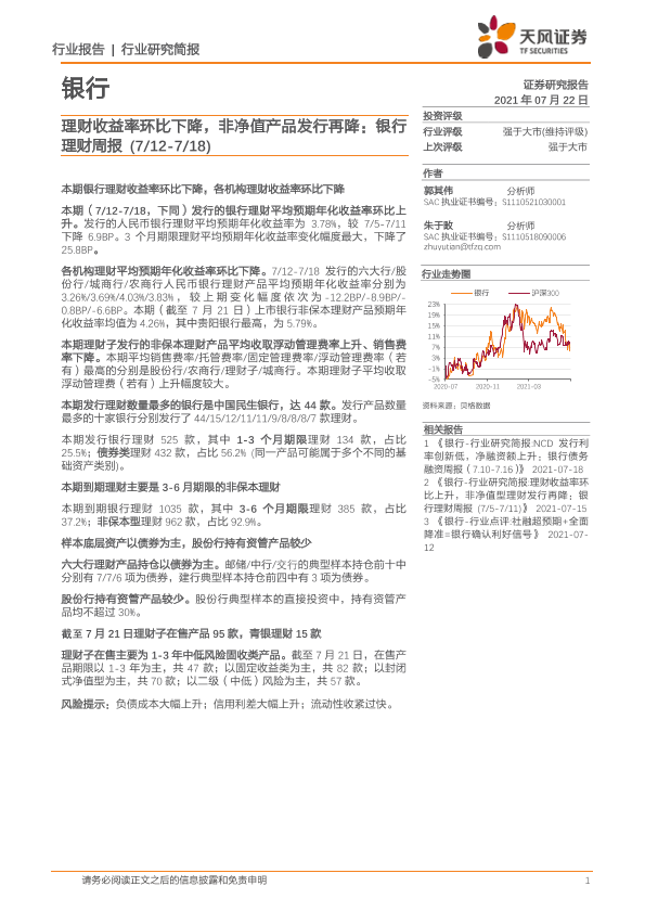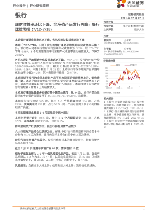 【天风证券】【20210722】理财收益率环比下降,非净值产品发行再降-18页