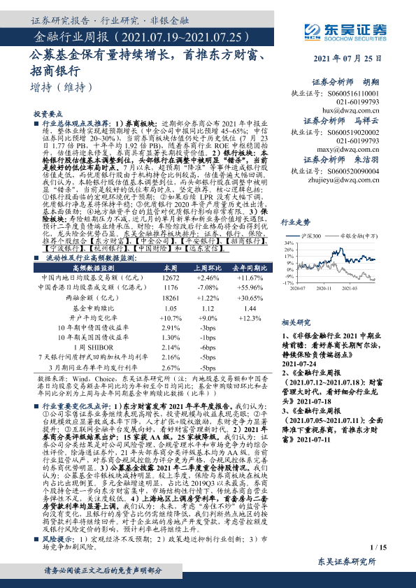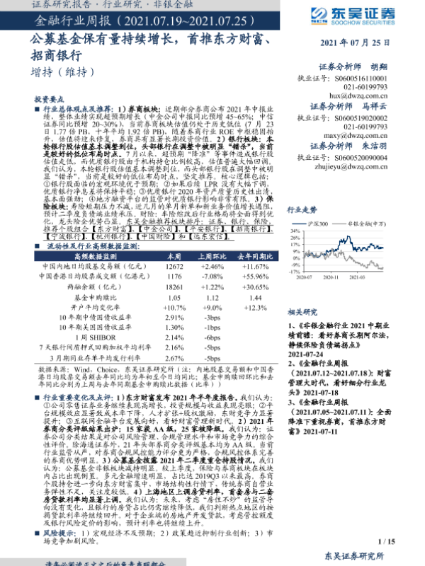 【东吴证券】【20210725】金融行业周报:公募基金保有量持续增长-15页